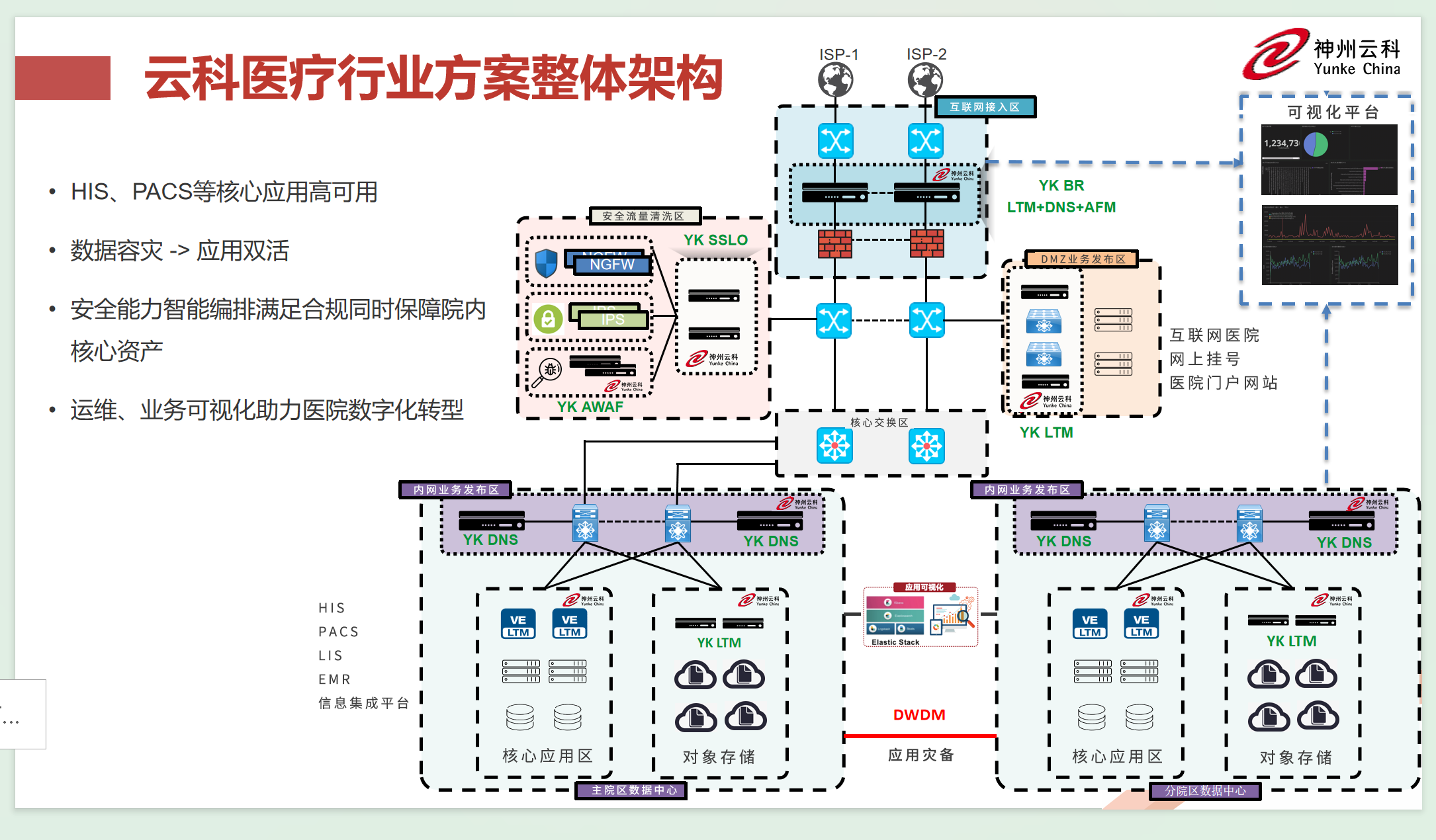在电子病历4升5,以及互联互通五乙的评审要求中,均提出了核心系统RTO/RPO提出了小于15分钟的要求。米兰电竞应用双活解决方案,拥有国内最多的双活实施案例,帮助医院用户轻松实现HIS、PACS、EMR等核心应用在单院区出现故障时的快速转院区访问,保障了医院应用系统的高可用性和高可靠性。
